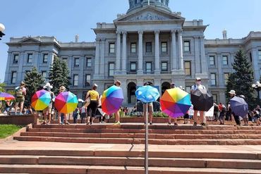 The Parasol Patrol shields children and young people from protesters. We provide hearing protection and use our umbrellas to peacefully walk in between protesters, hate groups and children with their families.